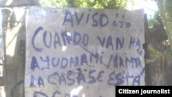 Pobladores en Santiago de Cuba expresan por medio de pancartas su indignación dice el reportero ciudadano Yriade Hernández residente en esa localidad. "En esta ocasión una familia se queja de la falta de gestión para que le arreglen la vivienda que destruyó el ciclón Sandy en 2012", precisa el reporte.